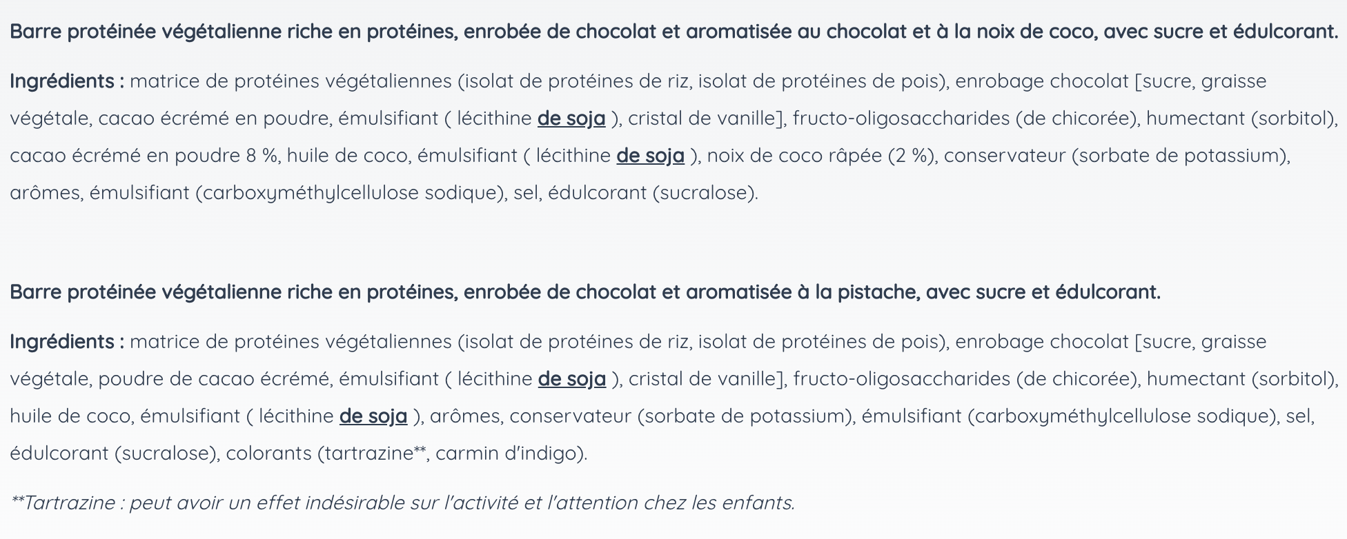 Plus de ~13 g de protéines végétales de haute qualité par barre
