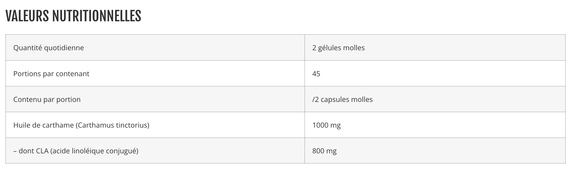 Type de produit : CLA (acide linoléique conjugué) en gélules