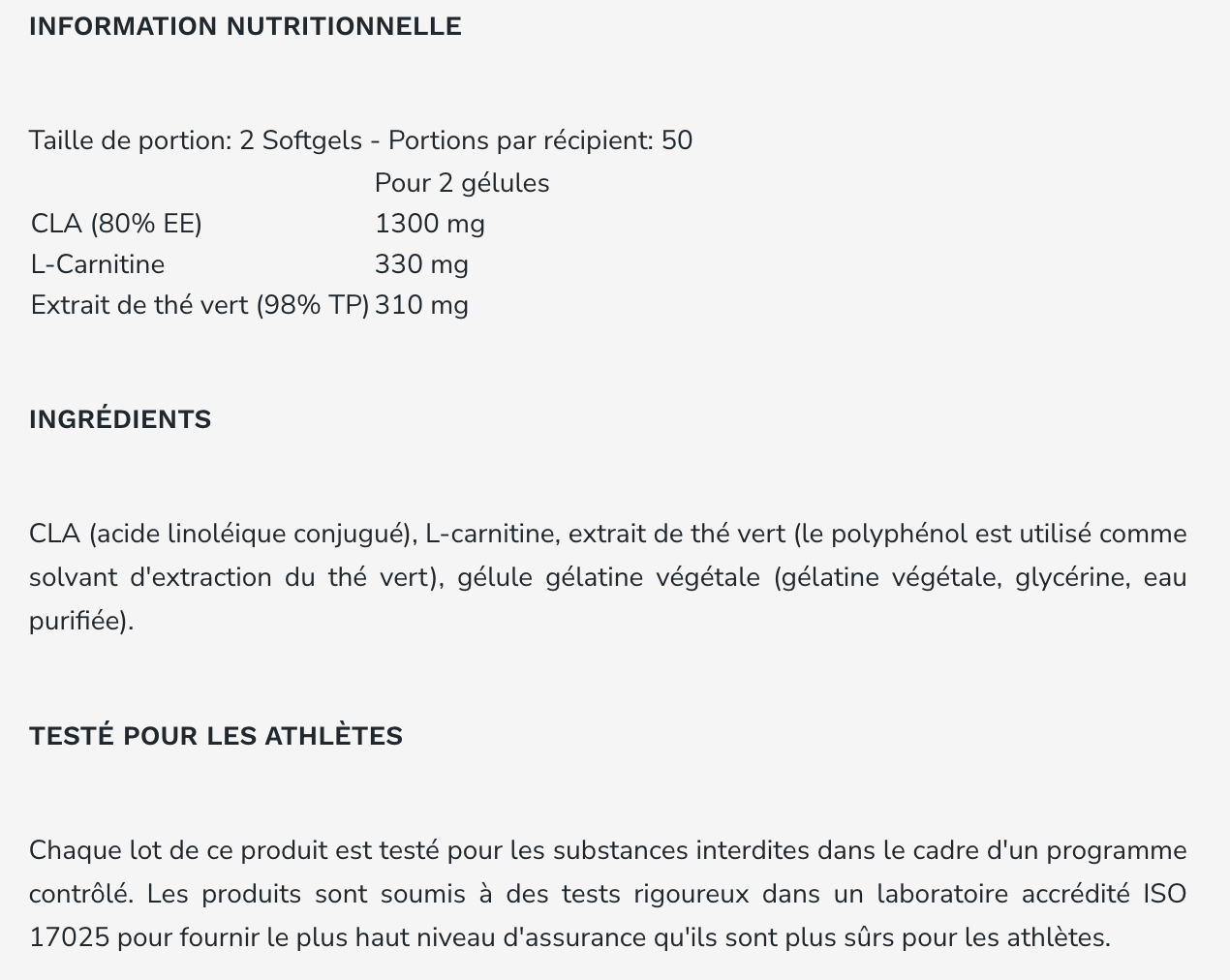 Type de produit : CLA + Carnitine + Thé Vert en gélules