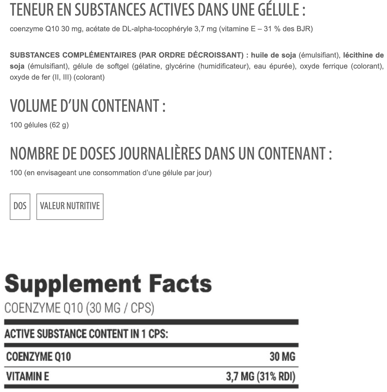 Complément en coenzyme Q10 (30 mg par gélule) — antioxydant essentiel pour la production d’énergie cellulaire