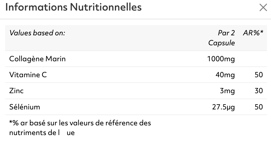 Tenir hors de portée des enfants. Complément alimentaire à base de collagène de poisson — déconseillé aux personnes allergiques au poisson. Ne remplace pas une alimentation variée et équilibrée ni un mode de vie sain.
