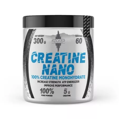 La Creatine Nano d’Azgard Nutrition est une forme de créatine monohydrate micronisée de très haute qualité, spécialement développée pour maximiser l’absorption et l’efficacité. Grâce à sa structure fine et à sa pureté exceptionnelle, elle se mélange parfaitement à vos boissons, sans résidus ni grumeaux.