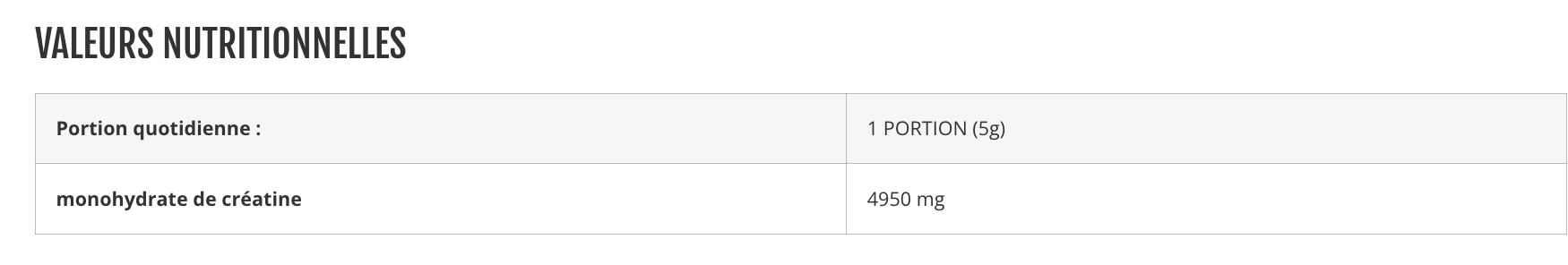 Composée à 100 % de créatine pure, rien n'a été ajouté ou enlevé lors de la production