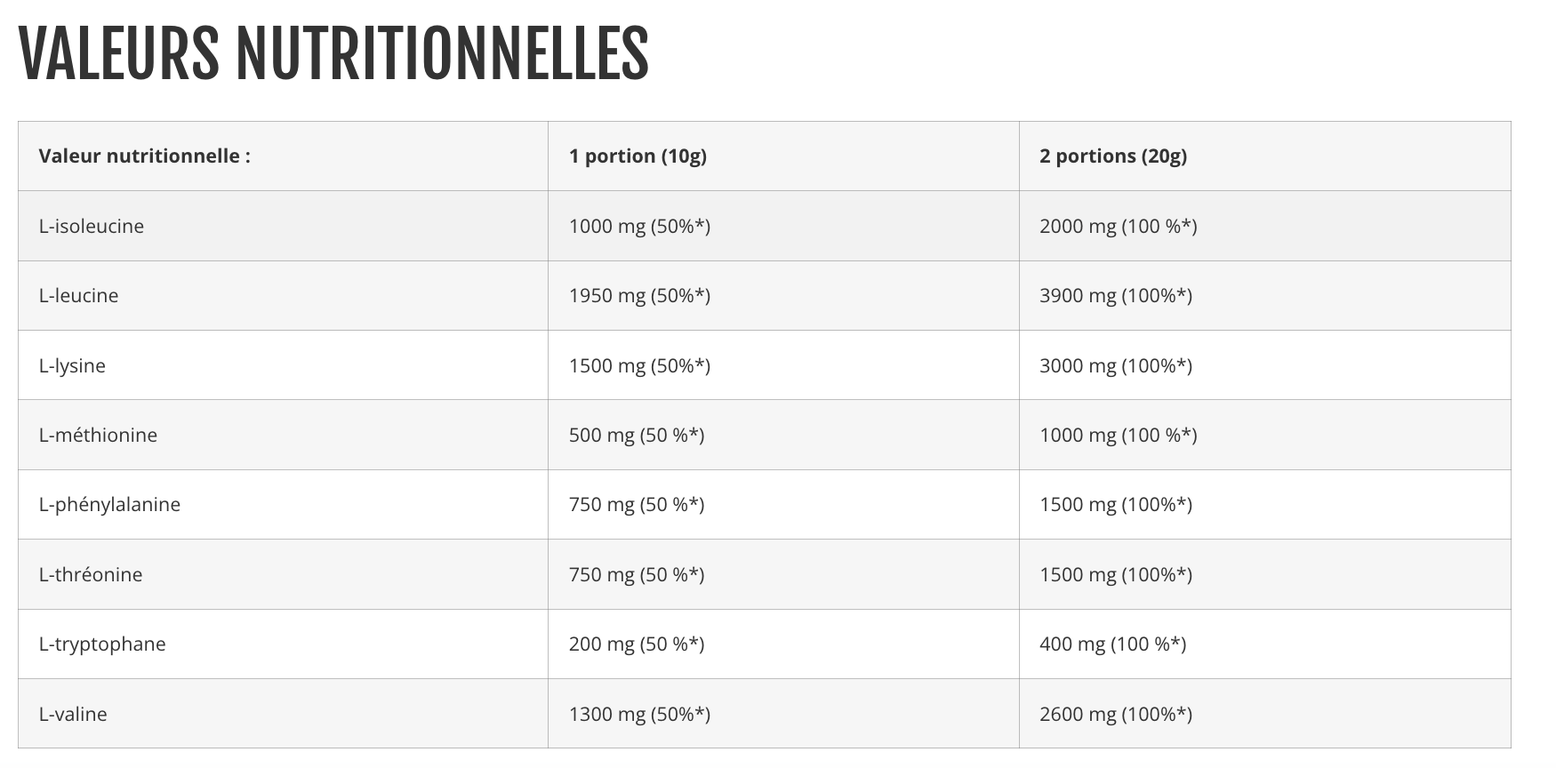 Complexe complet d'acides aminés essentiels (EAA + BCAA)