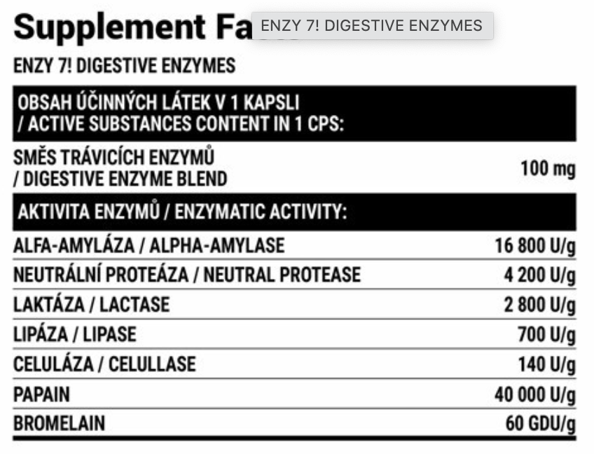 ENZY‑7 Digestive Enzymes de la marque Extrifit® est une formule avancée conçue pour soutenir la digestion et optimiser l'absorption des nutriments. Chaque capsule contient un complexe de 7 enzymes digestives naturelles (amylase, protéase, lactase, lipase, cellulase, invertase et maltase) qui agissent de manière ciblée sur les macronutriments : protéines, glucides, graisses et fibres.