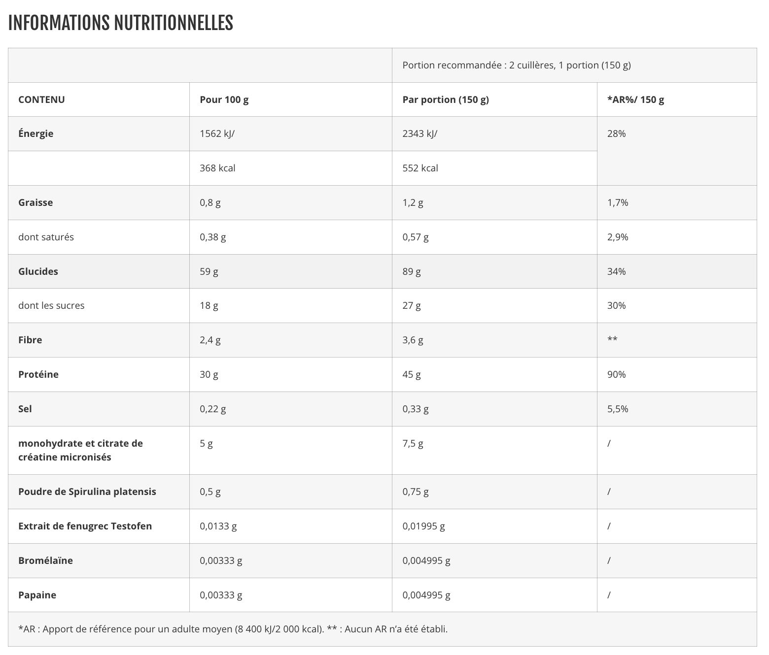 Environ 45 g de protéines multi-sources par dose pour soutenir l’anabolisme