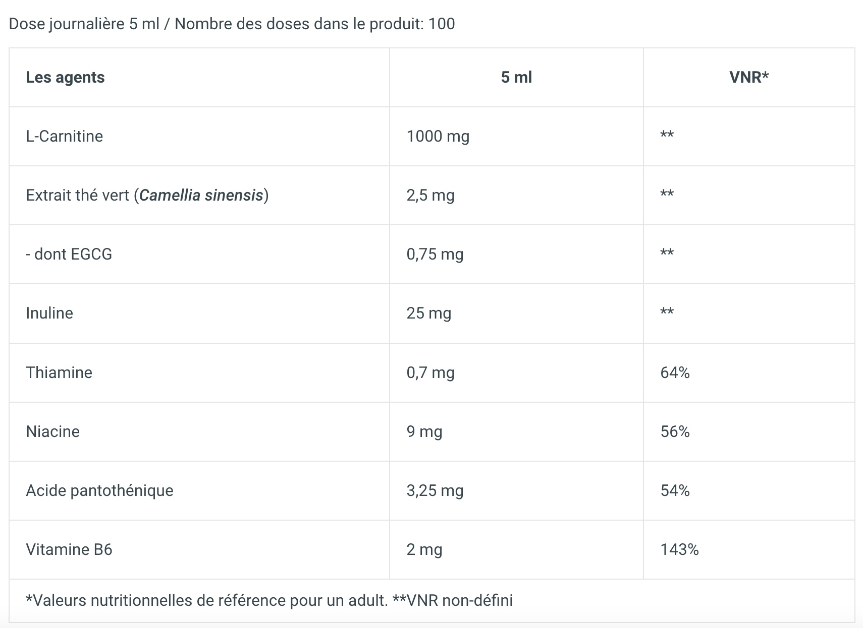 Contient la L-Carnitine Carnipure de la plus haute qualité