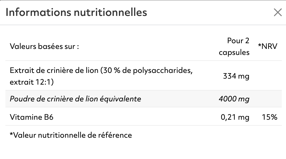 Extrait de Crinière de Lion 12:1 — équivalent 4000 mg de champignon cru pour une efficacité maximisée
