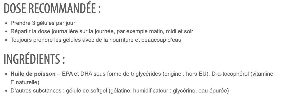 Chaque capsule contient 180 mg d'EPA et 120 mg de DHA