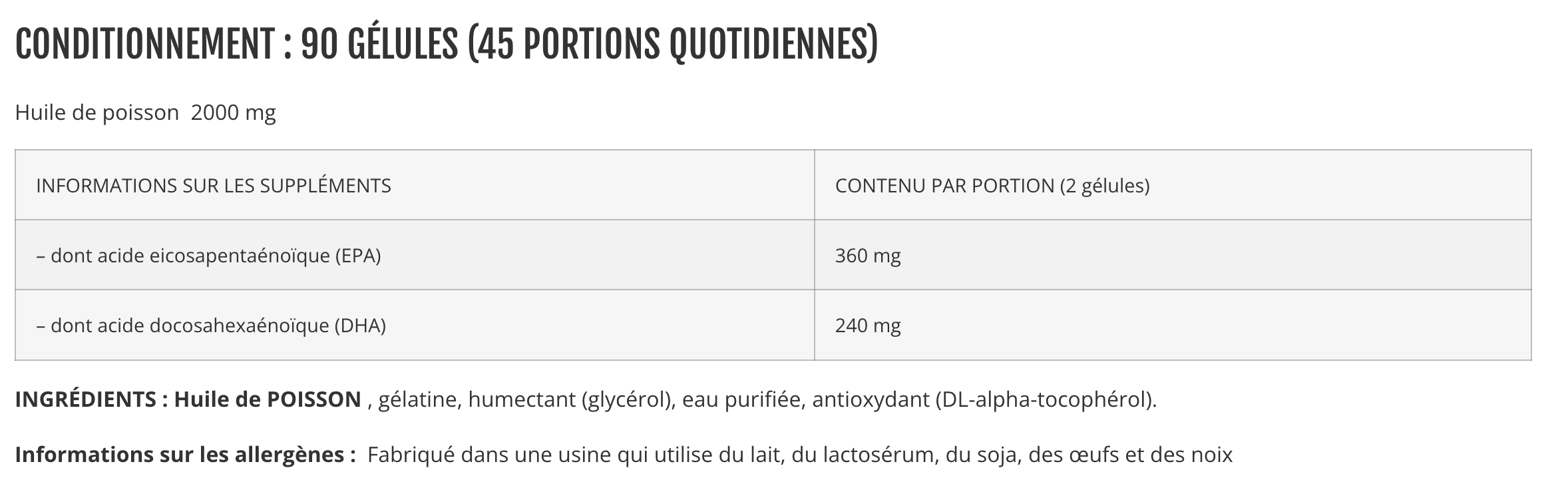 Formulé pour répondre aux besoins de tous – sportifs, actifs ou sédentaires – ce complément contribue à réduire l’inflammation, améliorer la récupération, réguler le cholestérol et maintenir une bonne fonction cognitive. Chaque capsule vous apporte une dose optimale, sans arrière-goût de poisson.