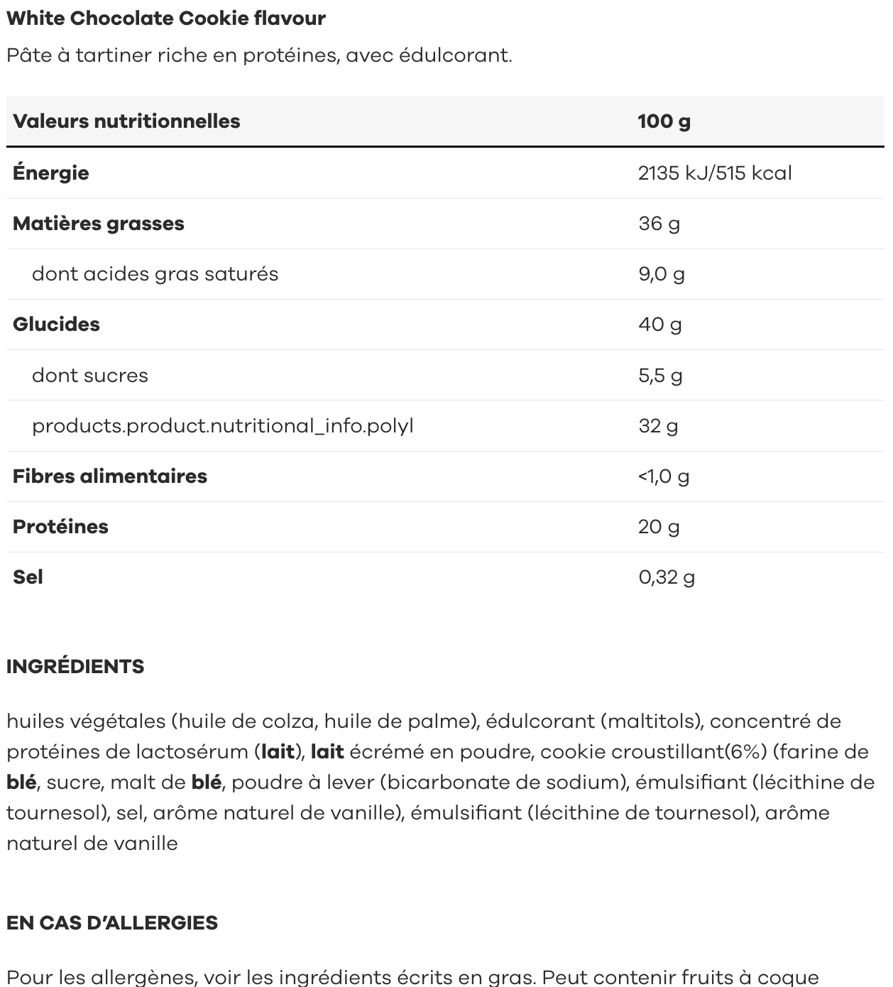 Type de produit : Pâte à tartiner chocolatée hyperprotéinée