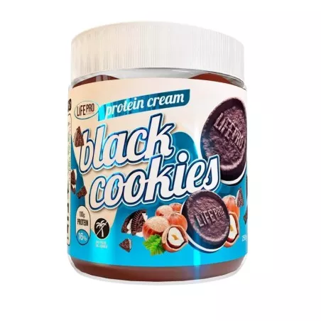 La Protein Cream Black Cookies de la gamme Life Pro Fit Food est une crème cacaotée fourrée aux morceaux de cookie, enrichie en protéines isolées. Avec une teneur annoncée de 16 % de protéines isolées, cette pâte à tartiner offre une alternative gourmande mais plus “nutritive” aux crèmes classiques, sans sucres ajoutés ni conservateurs artificiels.