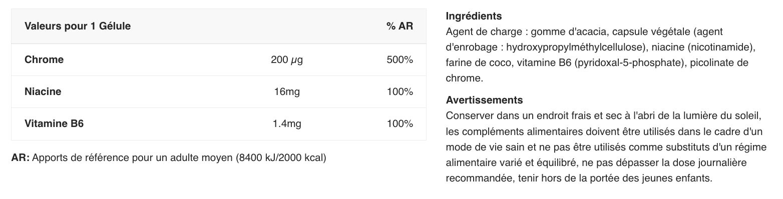 200 µg de chrome sous forme picolinate – haute biodisponibilité