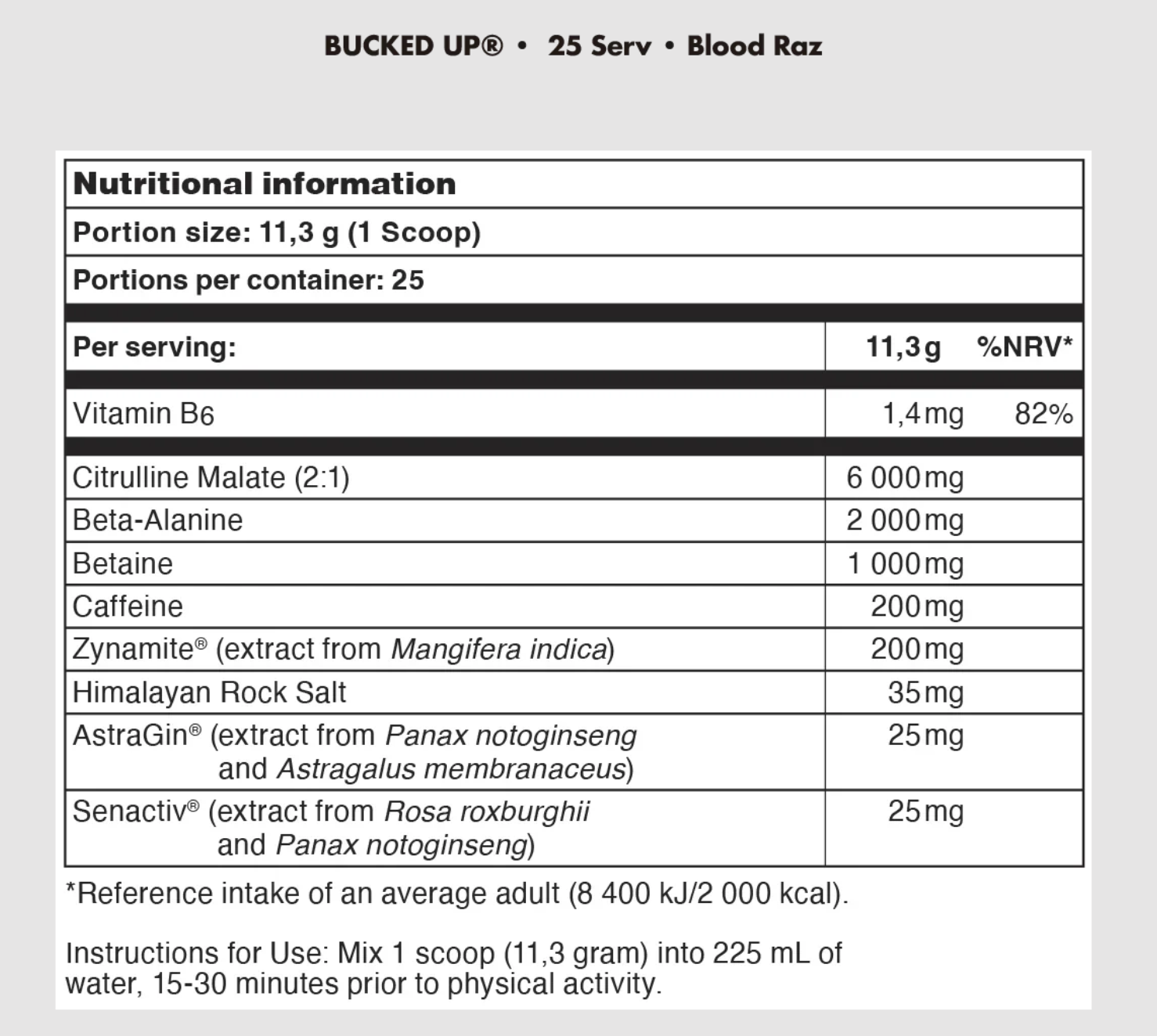 Disponible dans une variété de parfums rafraîchissants et savoureux, Bucked Up allie efficacité, goût et qualité de fabrication. Une référence incontournable pour les pratiquants exigeants !