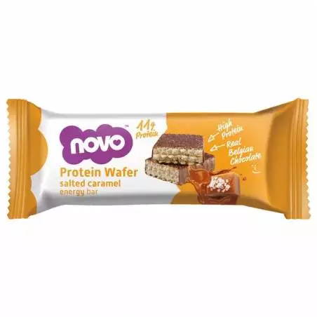 Novo Nutrition à fabriqué l'irrésistible barre de type gaufrette Protein Wafer Bar. Fabriquée à partir d'un mélange de protéines qui comprend de la caséine (lait) et de l'isolat de protéine de lactosérum. C'est aussi une barre à la texture croquante.
