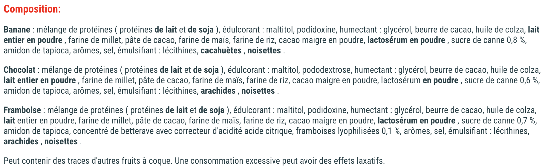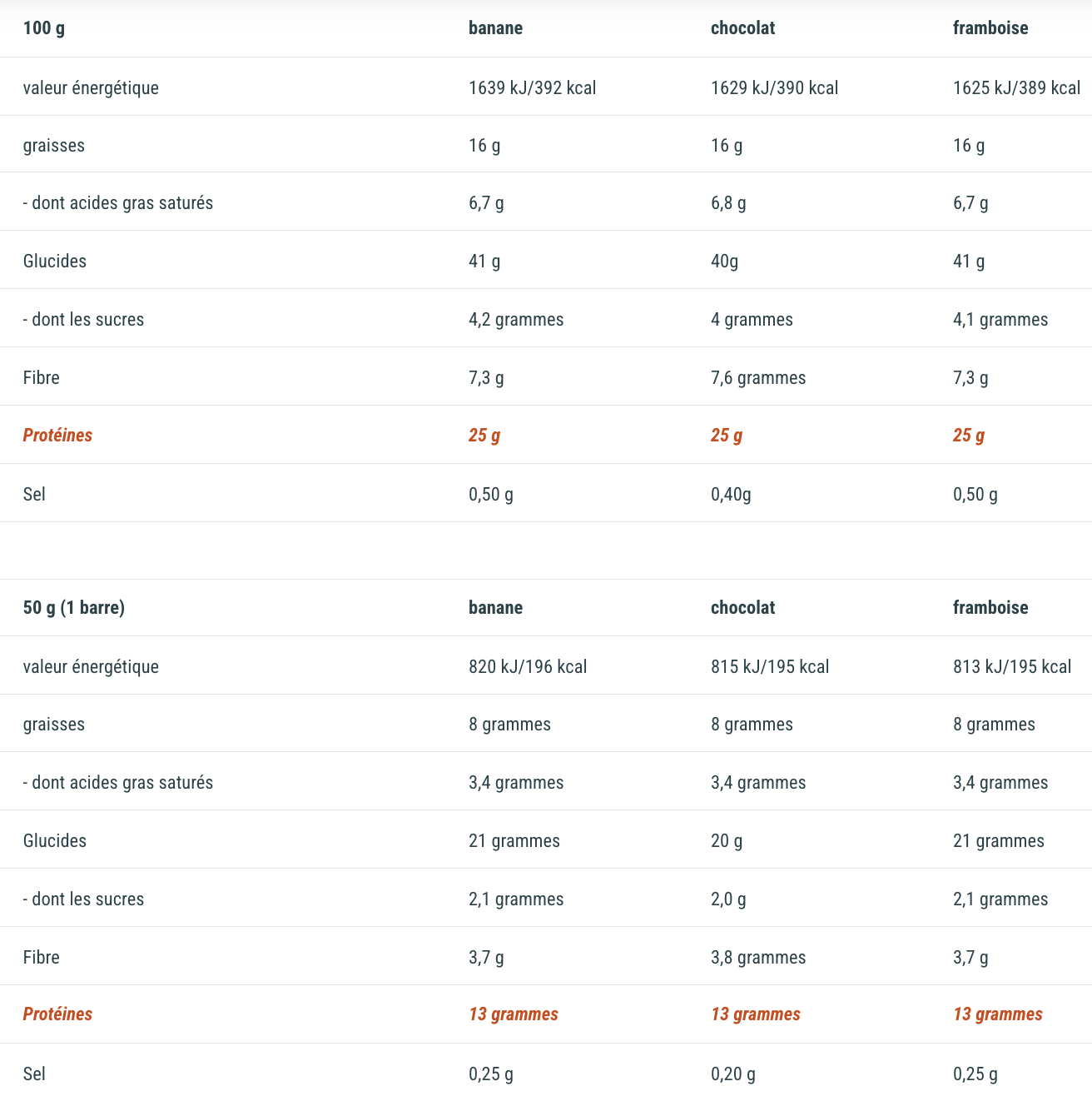 Haute teneur en protéines (~13 g par barre) pour nutrition fonctionnelle