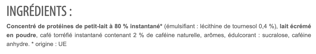 Type de produit : Whey protéinée + caféine / boisson protéinée instantanée