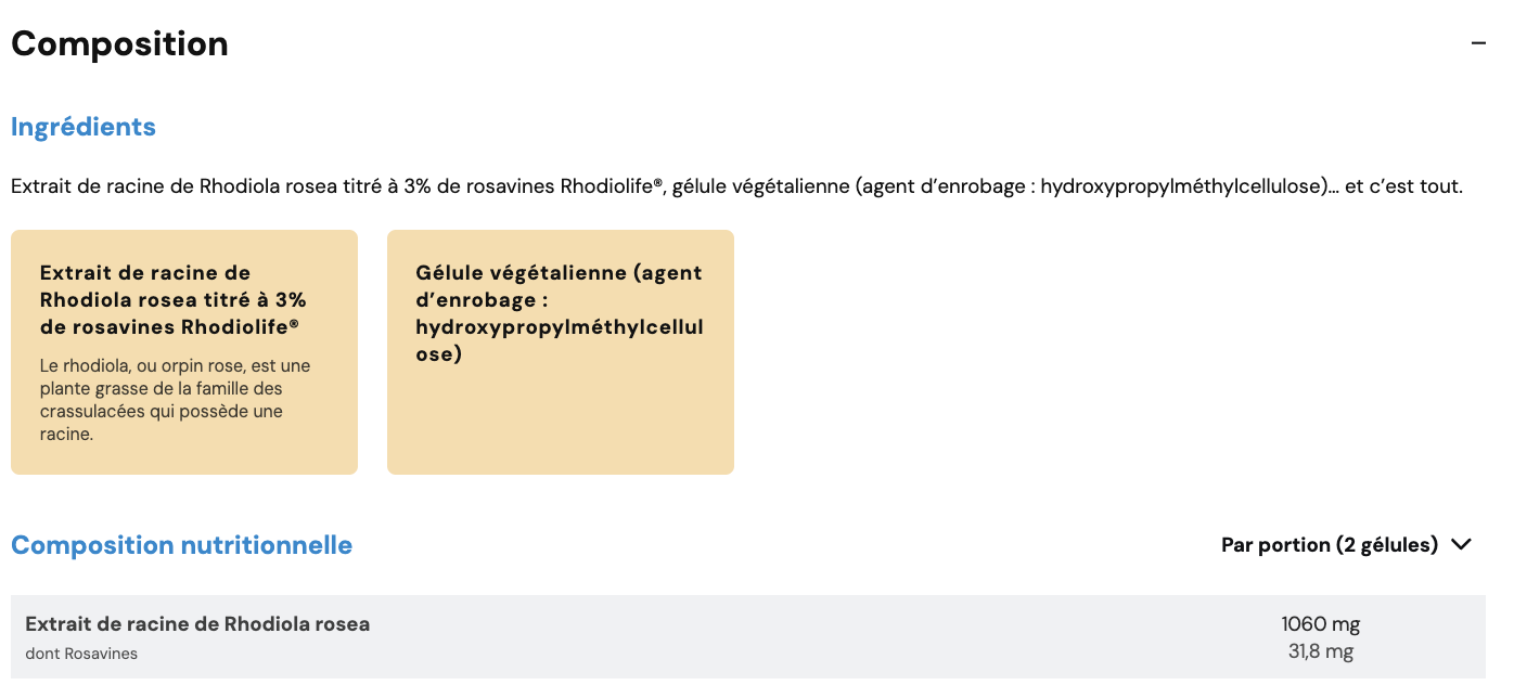 Extrait de Rhodiola Rosea standardisé (Rhodiolife) adapté au stress physique & mental
