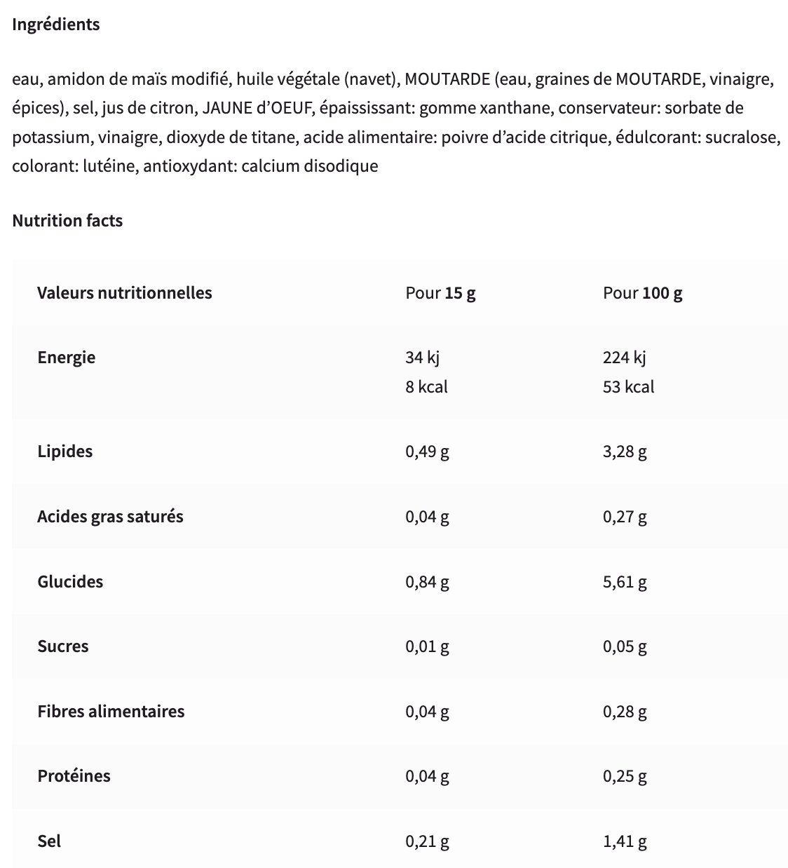 Type de produit : Sauce Zero calories