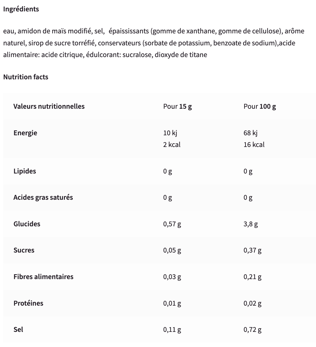 Type de produit : Sauce Zero calories
