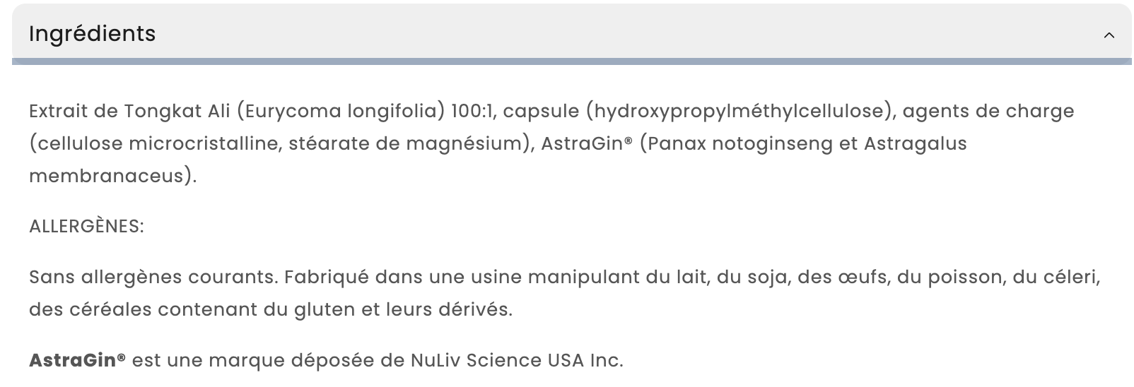 Type de produit : Extrait de Tongkat Ali en gélules