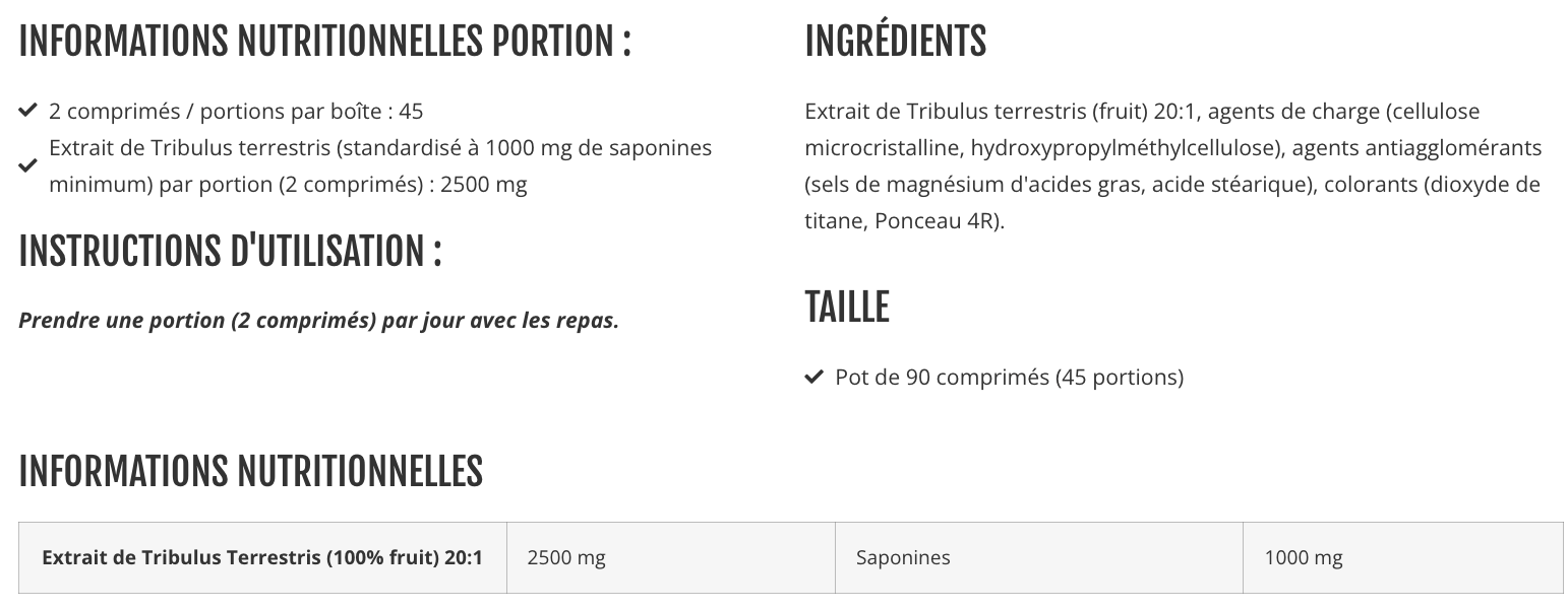 Standardisé en saponines (substances actives stimulant la testostérone)