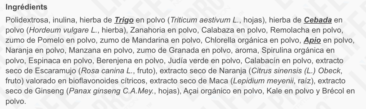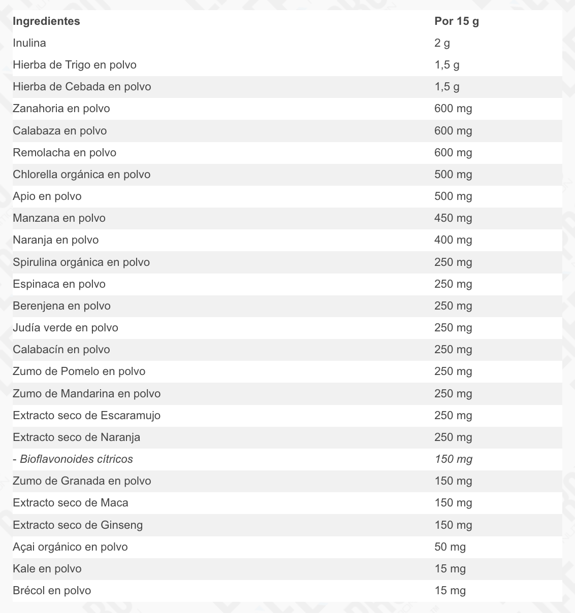 Mélange de plus de 20 extraits végétaux : légumes, algues, herbes, fruits