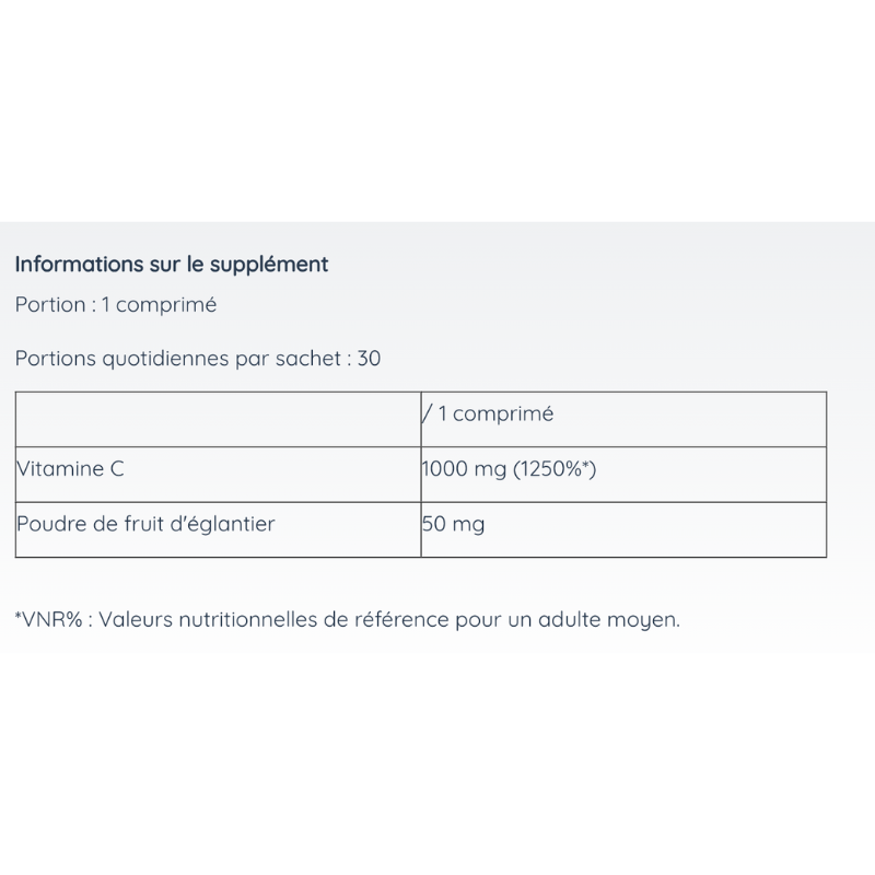 1000 mg de vitamine C pure par comprimé