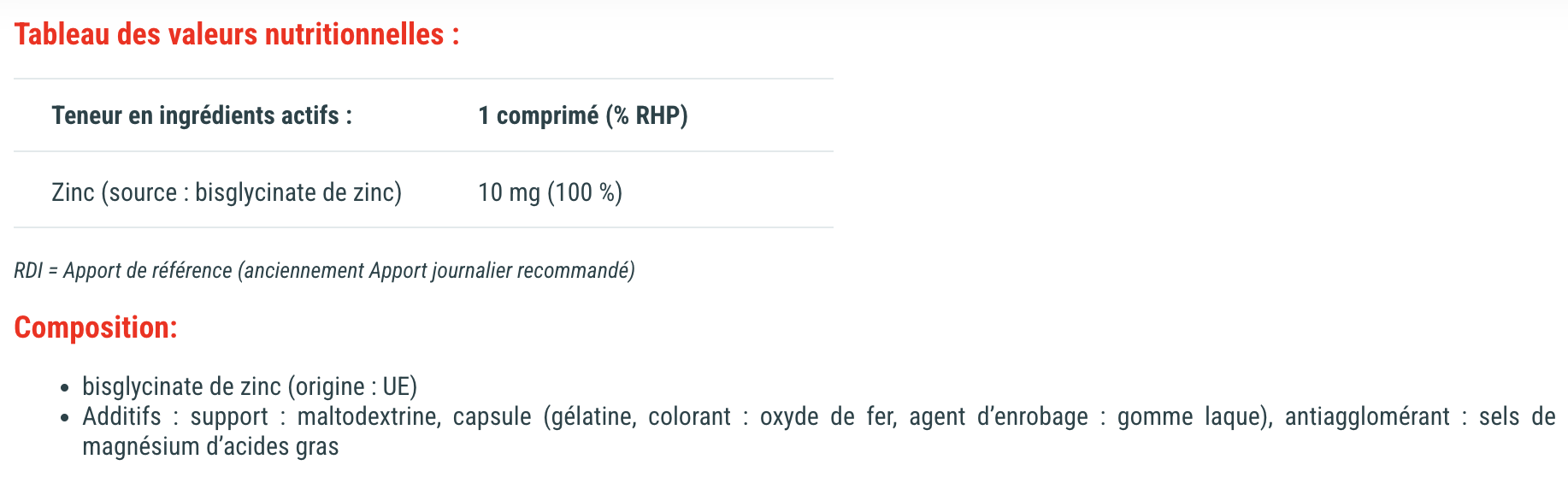 10 mg de zinc par gélule (100% des VNR)